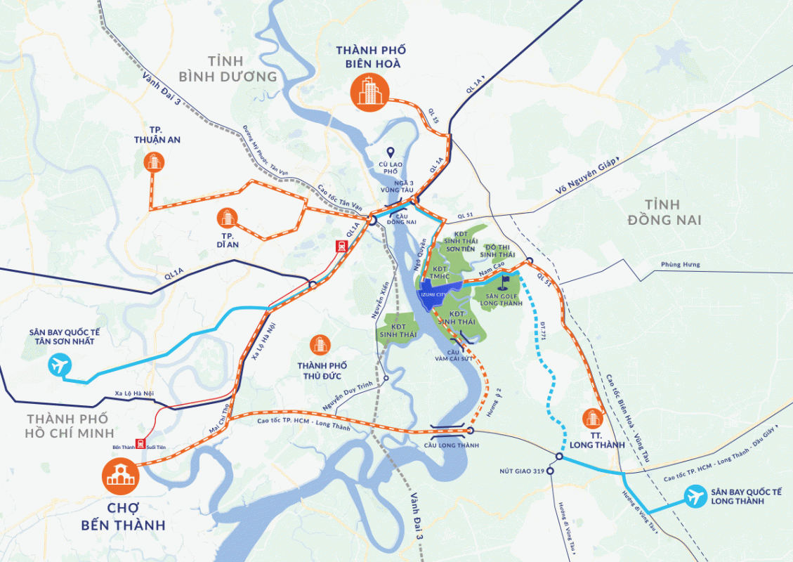 Tự hào là là trái tim của quần thể các khu đô thị đẳng cấp và thịnh vượng hàng đầu. Izumi City hứa hẹn sẽ trở thành một trung tâm kết nối của hệ thống hạ tầng giao thông và hạ tầng xã hội độc đáo và phong phú. Hiện hữu giữa các trung tâm kinh tế, thủ phủ công nghiệp lớn nhất Việt Nam như thành phố Hồ Chí Minh, thành phố Thủ Đức, thành phố Biên Hòa, vị trí dự án tọa lạc chính là khu vực phát triển mạnh mẽ tại khu Đông với cơ sở hạ tầng giao thông và công nghiệp hiện đại hàng đầu cả nước.