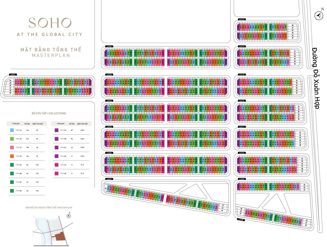 Nhà phố SOHO tại The Global City Đỗ Xuân Hợp là dòng shophouse – nhà phố thương mại mặt tiền Đỗ Xuân Hợp và các trục nội khu chính, với diện tích đất phổ biến 5×19m, 7×19m, một số căn góc, căn trục chính ấn tượng hơn.