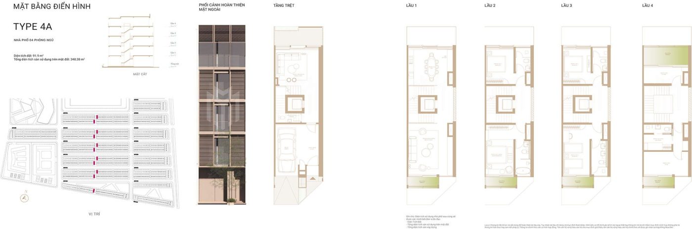 Giá bán ghi nhận từ khoảng 32–37 tỷ/căn cho dãy 5×19m và lên tới 60–72 tỷ/căn cho các vị trí mặt tiền lớn, góc hoặc trục chính.